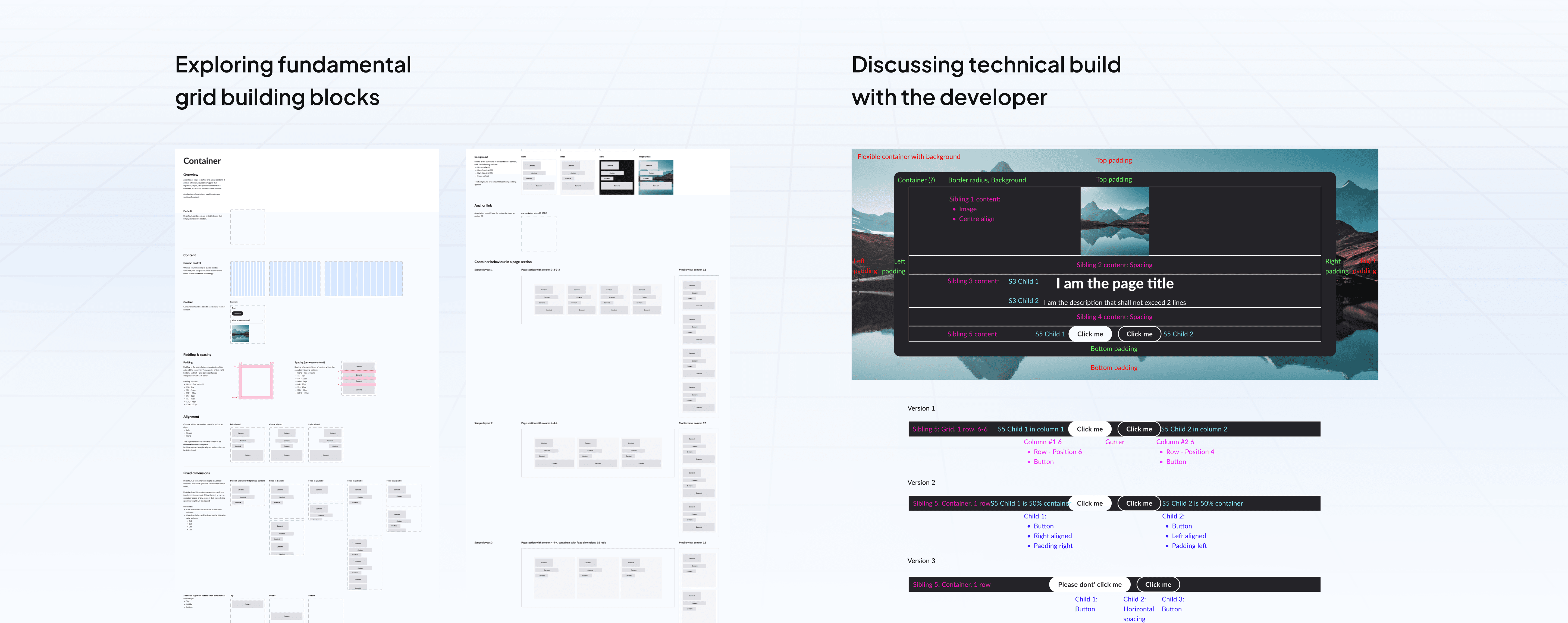 Working closely with our product owner and developer, I initiated conversations around a grid system that fundamentally changes how layouts are structured. Rather than fixed, predefined arrangements, the grid allows any combination of rows and columns — with configurable corner radii, background colours, and text and image alignment.